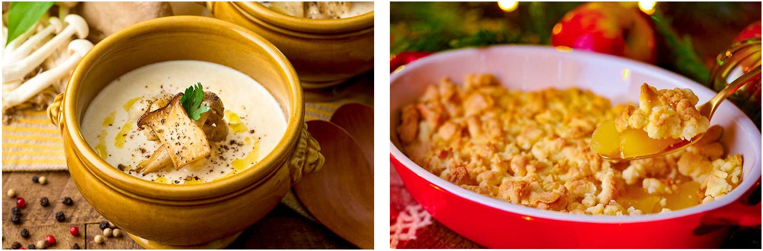 デザートには、こちらも信州産のりんごを使ったイギリス発祥のお菓子「アップルクランブル」をお楽しみください。バニラアイスを添えて召し上がるのもお薦めです。