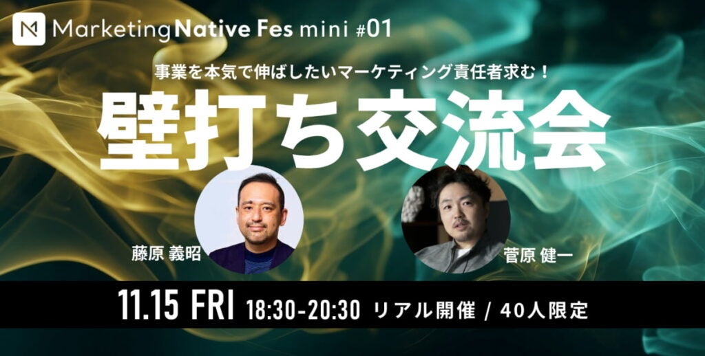 【11/15(金)リアル開催】トップマーケター2人が事業成長の悩みにアドバイス!Marketing Native Fes mini #01「壁打ち交流会」のお知らせ