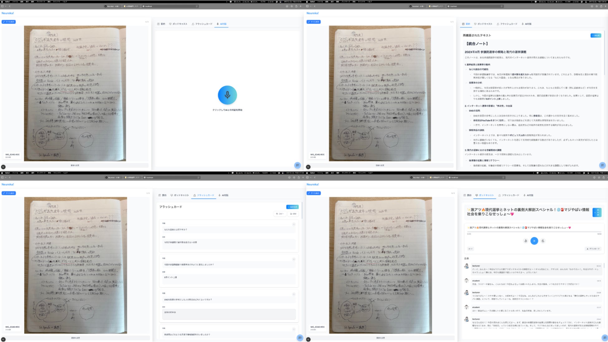教科書やノートの写真をアップロードするだけで、AIがポッドキャストやフラッシュカードを自動生成し、学習の基本となる「理解」を効率化するアプリです。ギャル先生と真面目な生徒の対話形式のポッドキャストで、難しい内容も耳から簡単に理解できます。