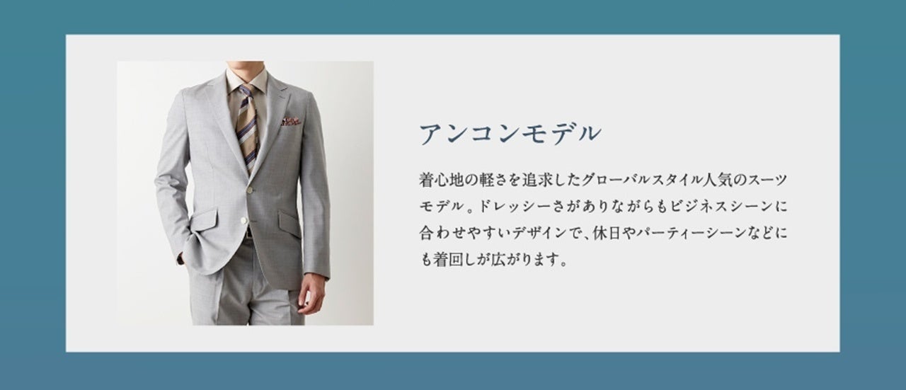 “高い” “古くさい” “入りづらい” などと思われがちなオーダースーツ業界を根本から変えるべく、リーズナブルな価格でのご提供や、ファッション性を重視した豊富なスーツモデルや生地のご用意、お洒落な空間デザインなどの工夫を重ねて、ブランドのコンセプト「ENJOY ORDER!」のもと、オーダースーツを通してビジネスマンの皆様を応援することを追及し続けています。