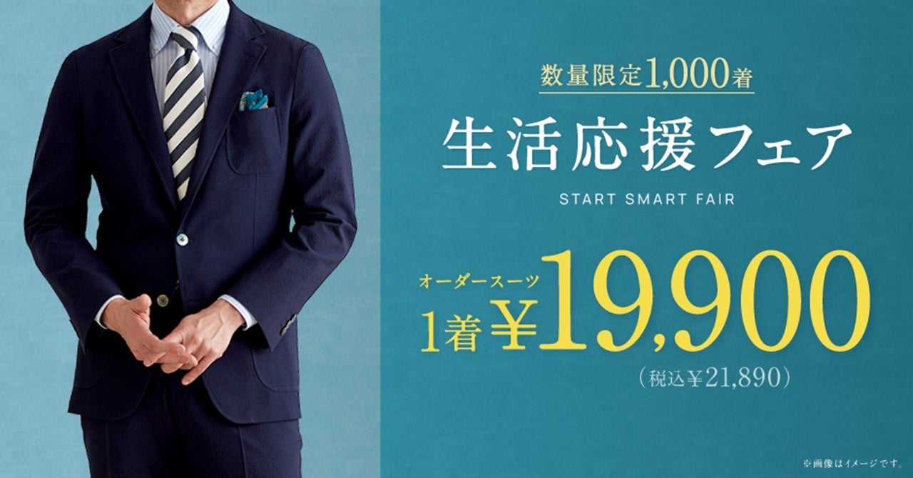 オーダースーツ専門店「グローバルスタイル」を運営するグローバルスタイル株式会社(東京証券取引所 スタンダード市場:7126、本社:大阪市中央区、代表取締役社長 田城弘志)に、本格オーダースーツ1着を19,900円(税込21,890円)でご提供する『生活応援フェア』が新登場いたします。