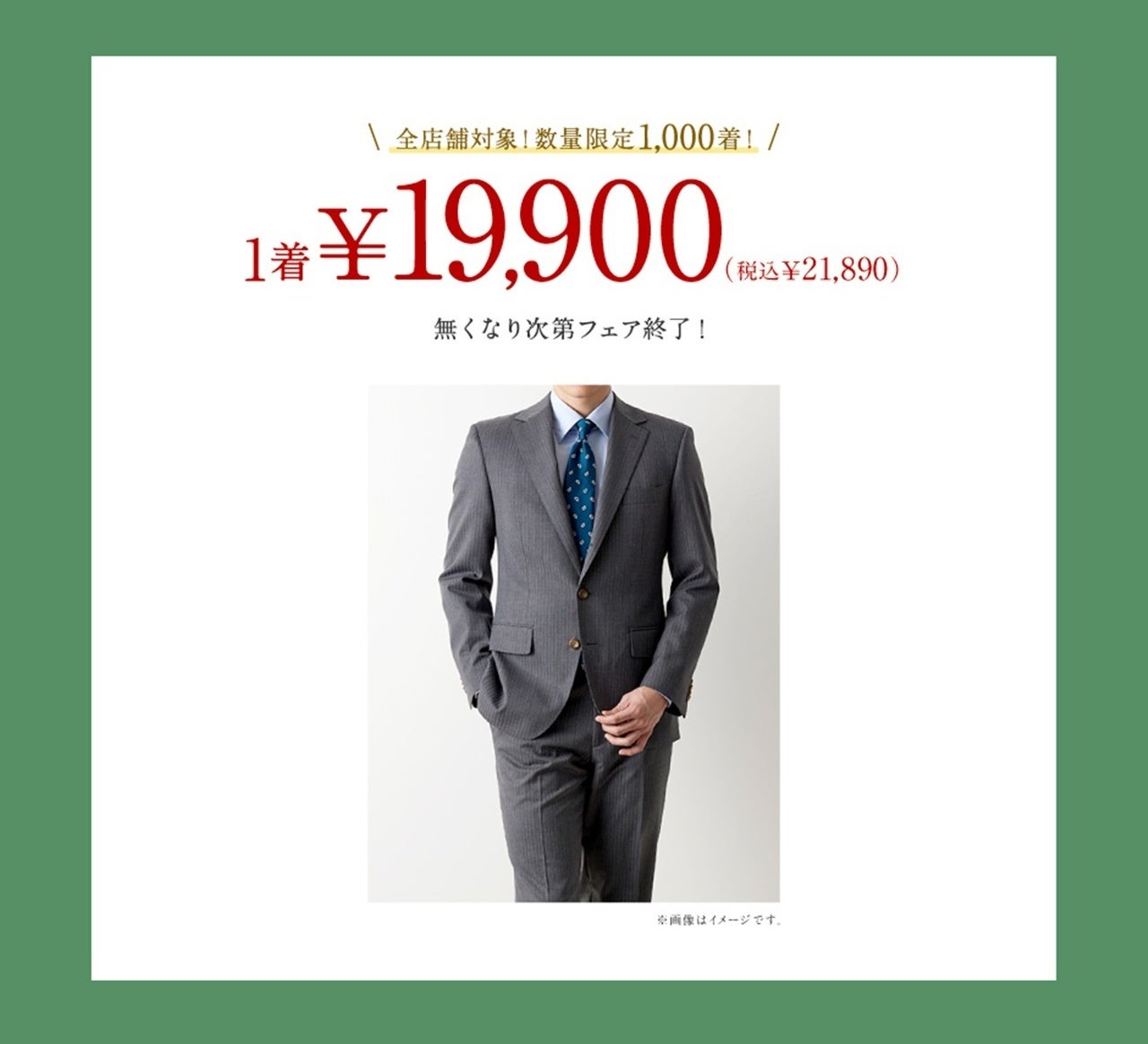 【数量限定1,000着!】グローバルスタイルが、本格オーダースーツ1着19,900円(税込21,890円)の「生活応援フェア」を初開催!物価高の今だからこそ本格オーダースーツをお得に。