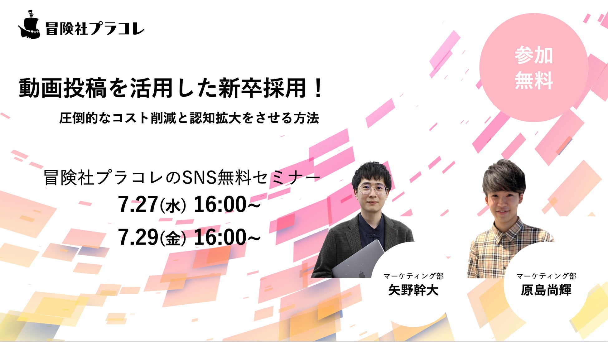 【総フォロワー数77.4万人のプラコレが教える】ショート動画を採用活動に活用。圧倒的なコスト削減と認知拡大で欲しい人材に的確にリーチさせる!SNS無料セミナー実施!
