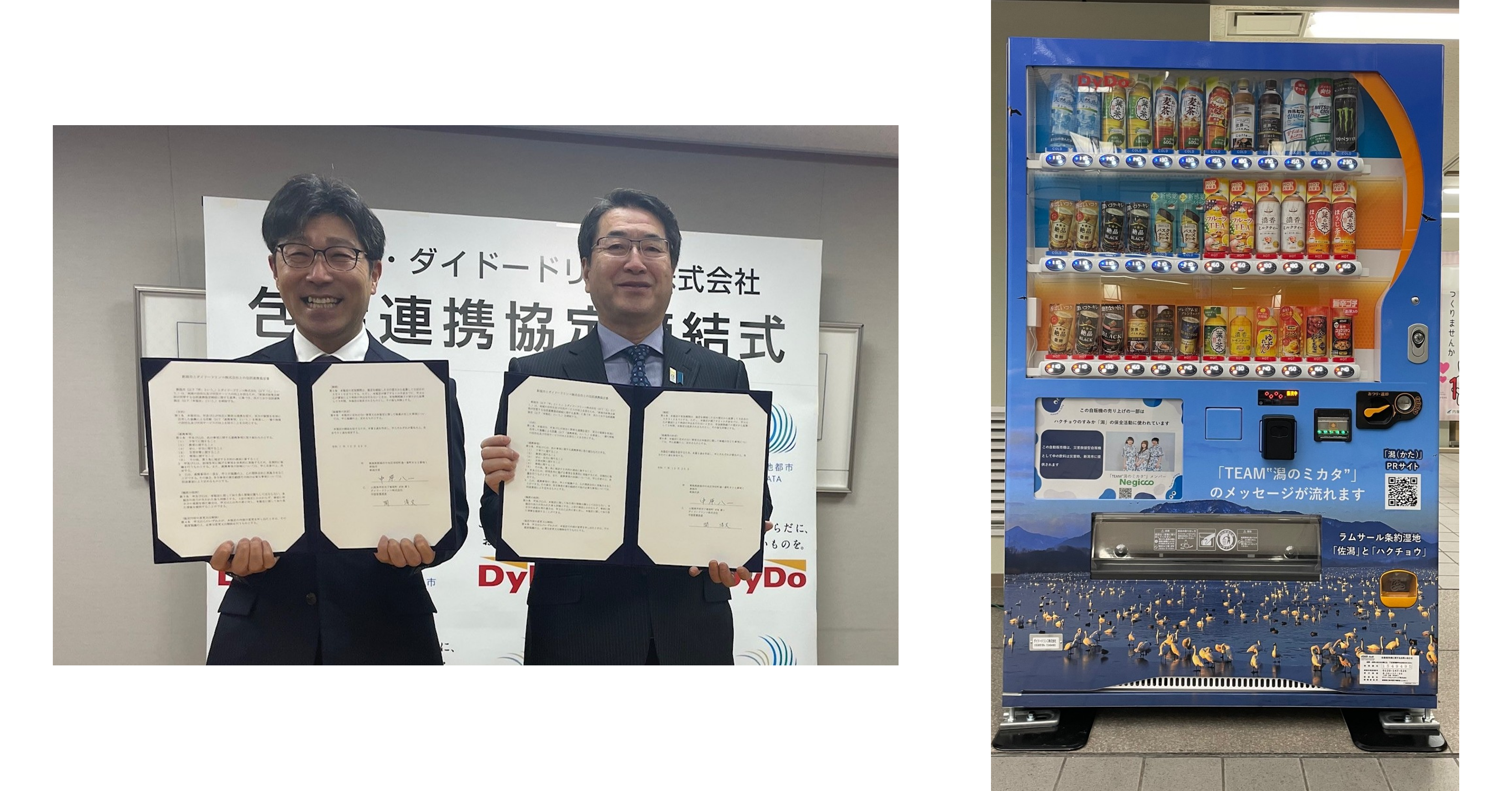 ダイドードリンコと新潟県新潟市が包括連携協定を締結 取り組みの一環として「国際湿地都市NIIGATA自動販売機」を設置