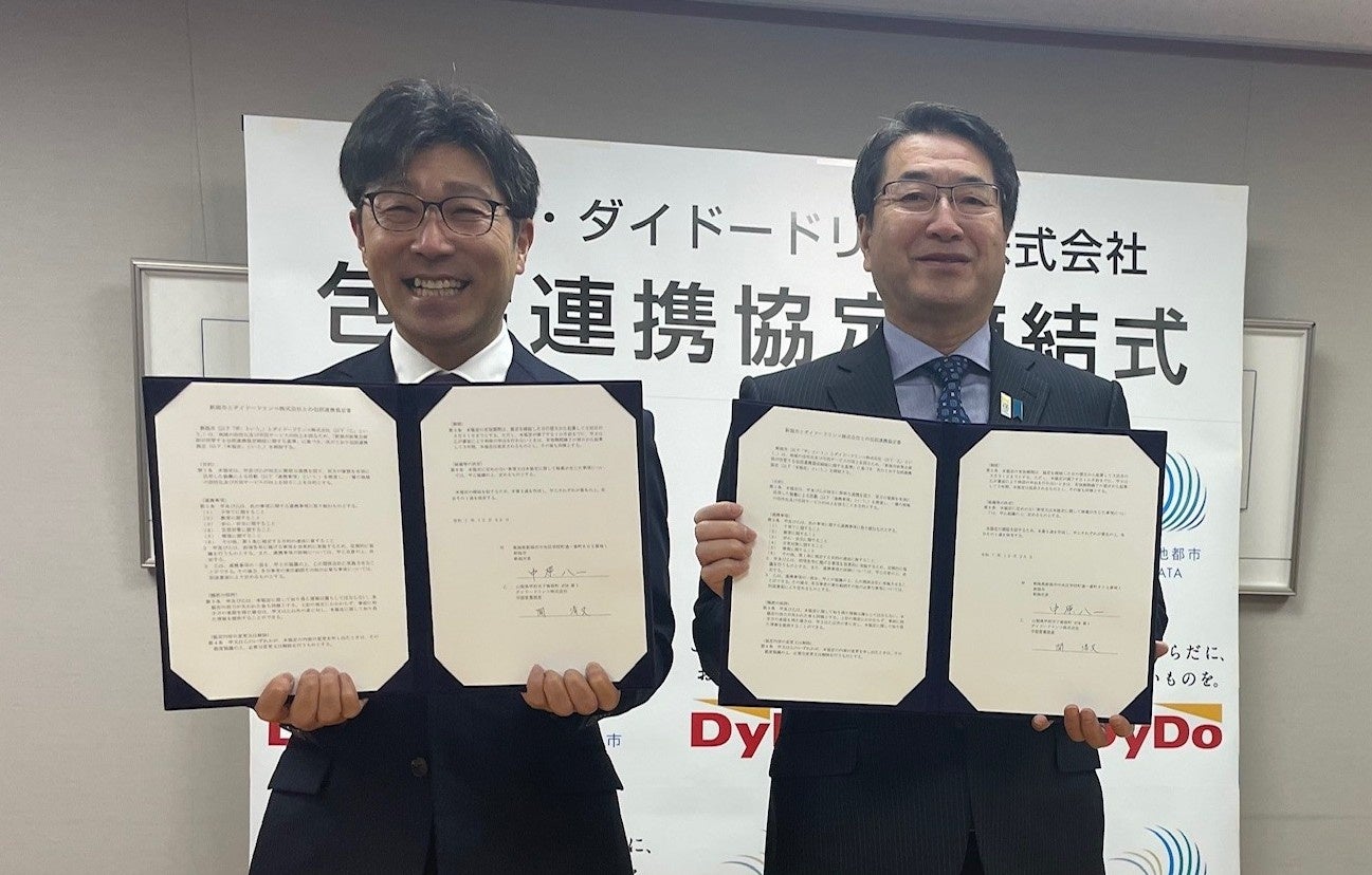 ダイドードリンコ株式会社(本社:大阪市北区、代表取締役社長:中島 孝徳、以下「当社」)は、新潟県新潟市(以下「同市」)と双方の資源を有効に活用した協働による活動を推進し、一層の地域の活性化および市民サービスの向上を図ることを目的とした包括連携協定(以下「本連携協定」)を、12月25日(木)に締結しましたので、お知らせいたします。