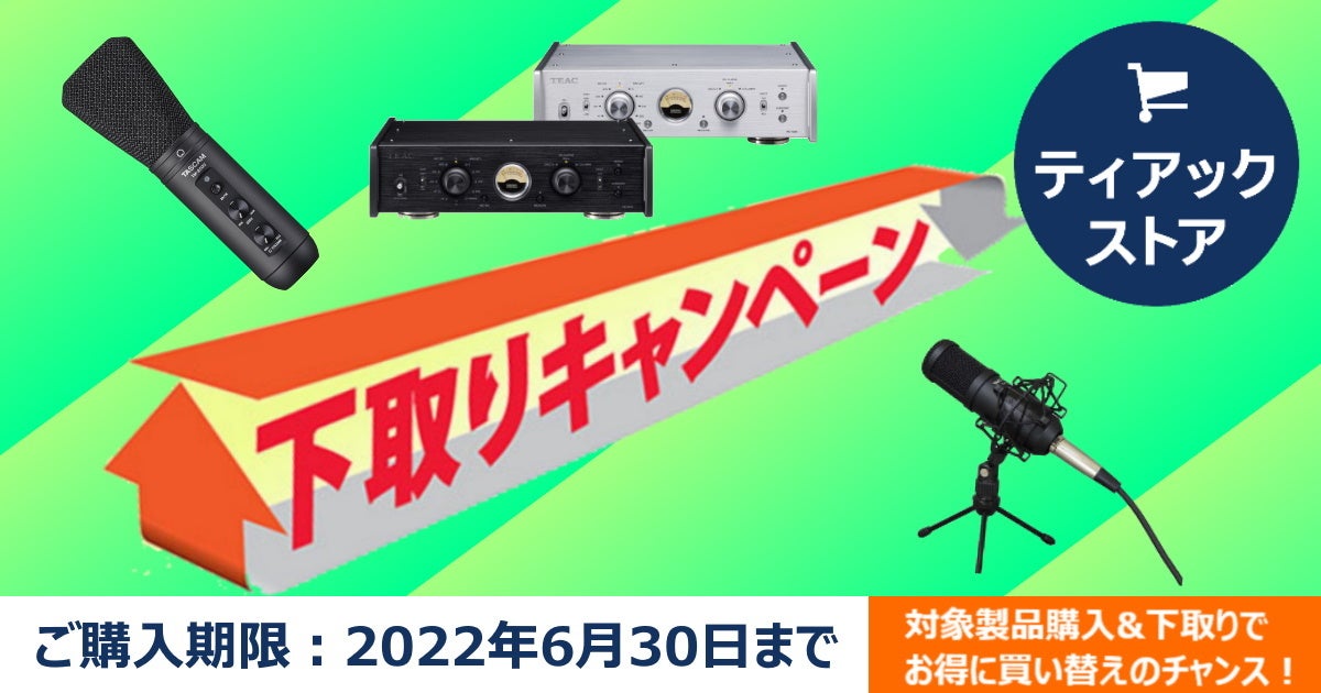 ティアック株式会社(東京都多摩市)が運営する公式オンラインストア「ティアックストア」は、2022年6⽉30日(木)までの期間、「下取りキャンペーン」を実施いたします。