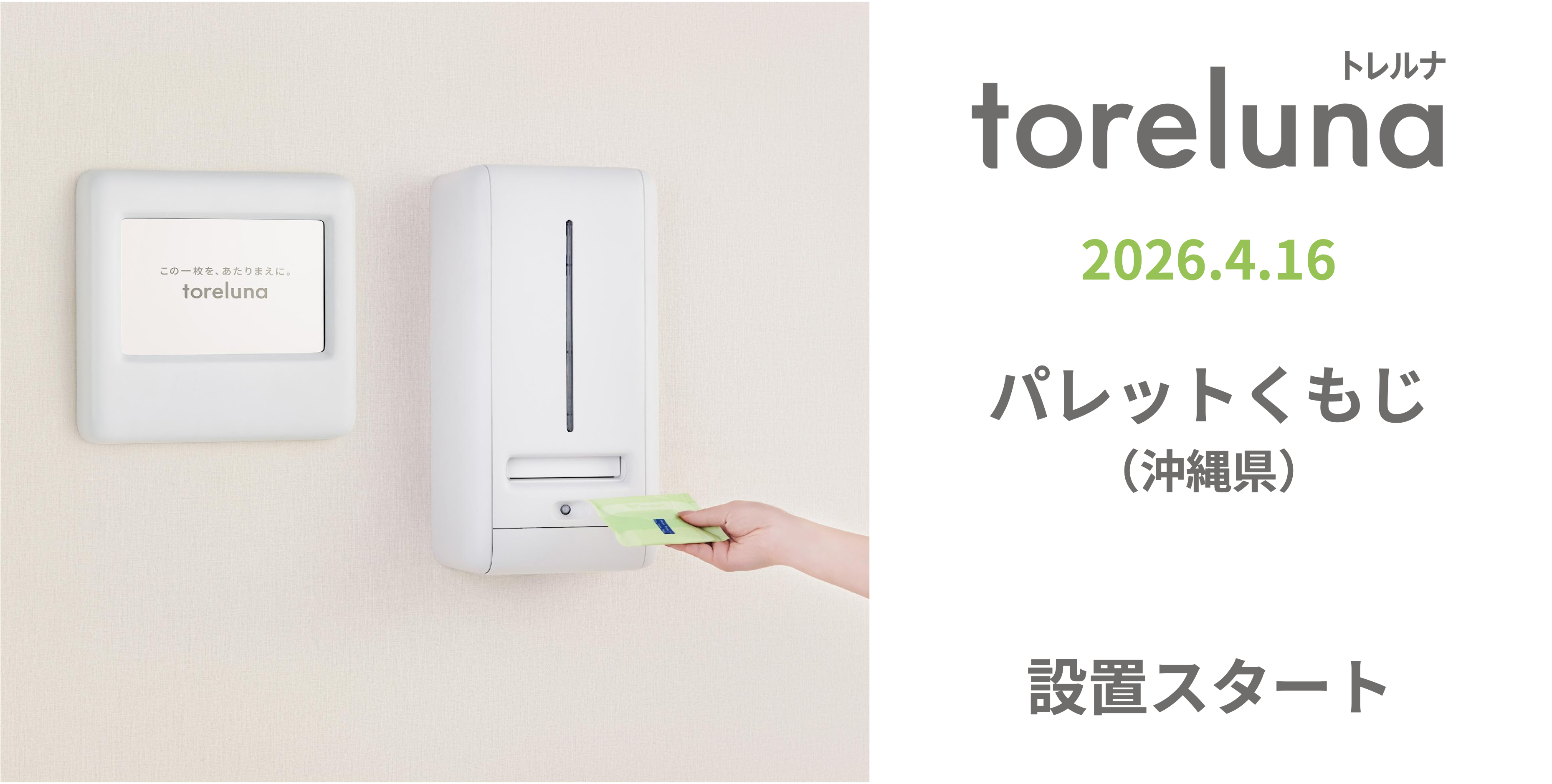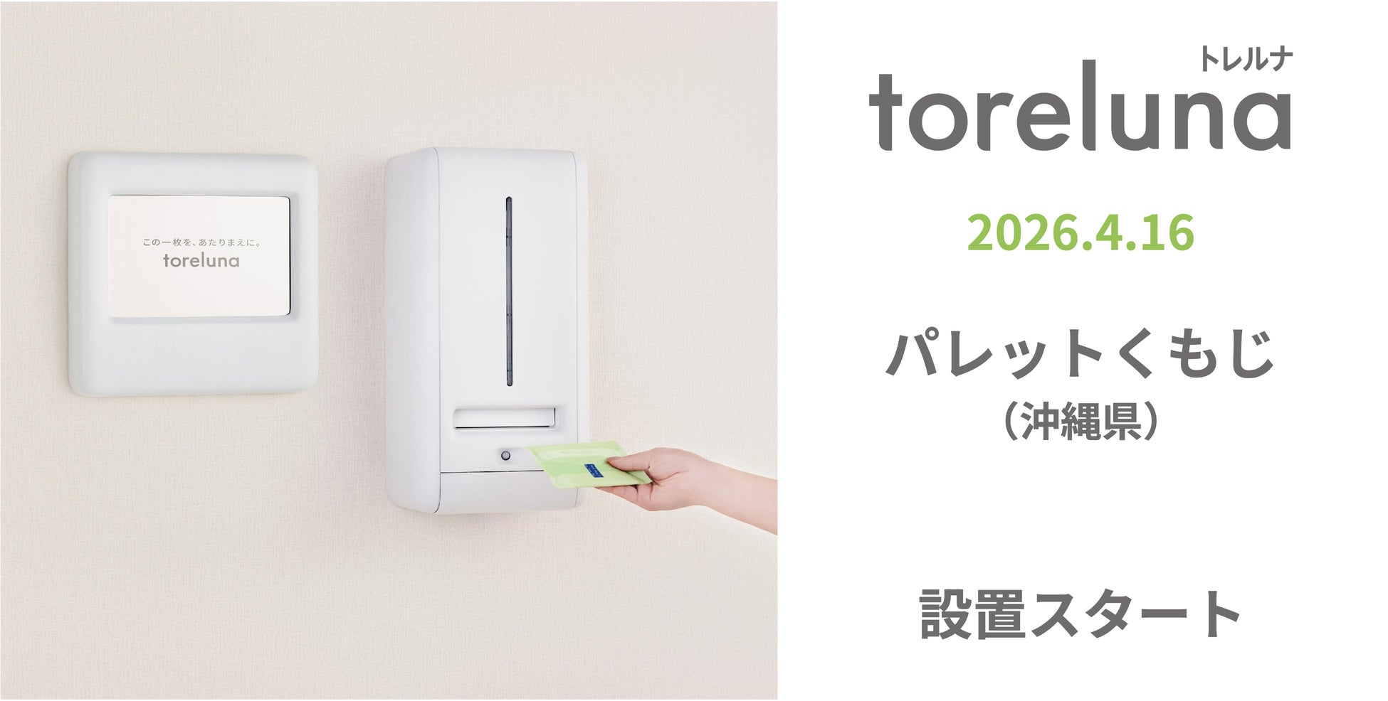 株式会社ネクイノ(大阪市北区、代表取締役:石井 健一)は、トイレの個室で生理用ナプキンを常備し無料で提供するサービス「toreluna(トレルナ)」(以下 トレルナ)を、パレットくもじへ設置し、サービスの提供を開始いたします。