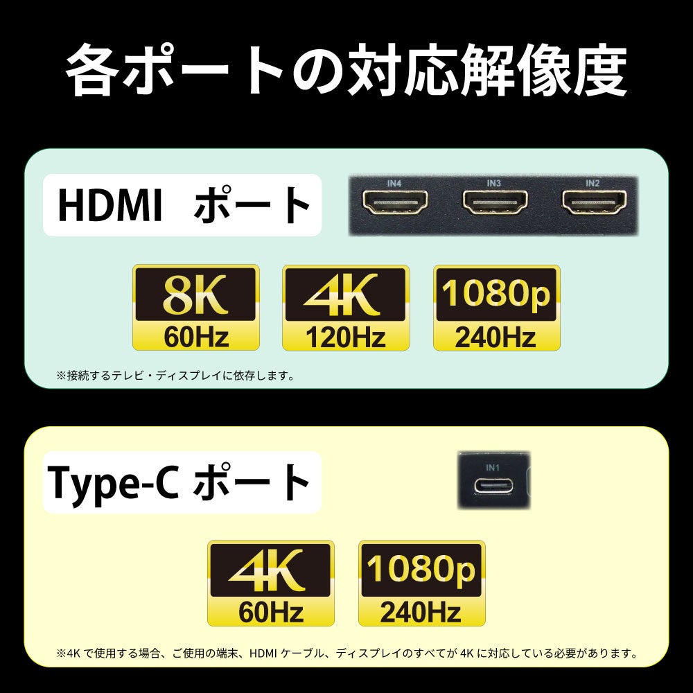 ※USB Type-C入力ポートの最大解像度は4K60Hzとなります。