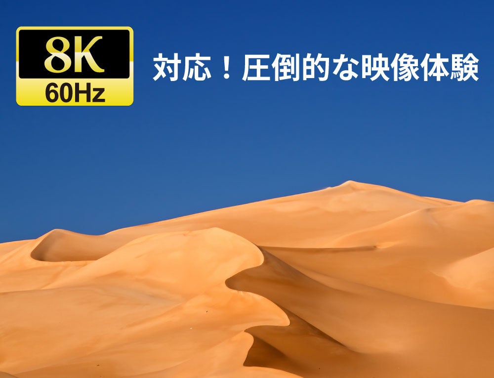 本製品のHDMIポートは8K60Hz出力に対応。フルHDの16倍の画素数をもつ8K映像をそのままテレビやディスプレイに出力できます。