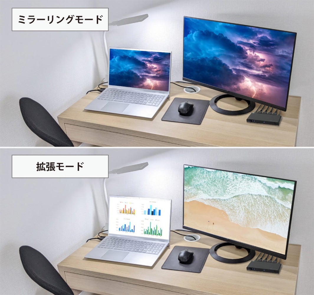 また、本製品はミラーリング/拡張にも対応しています。