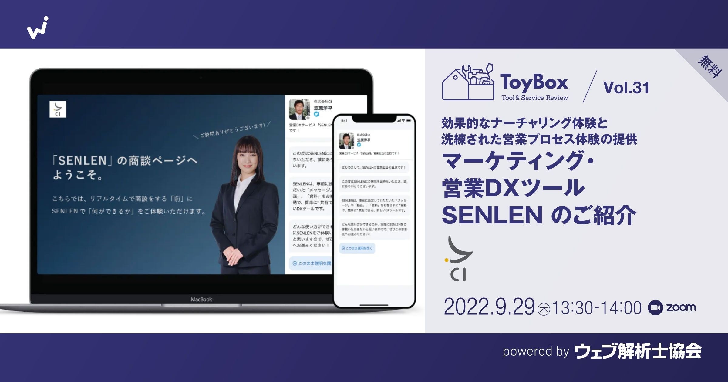 2022/9/29(木)13:30 - 14:00 ToyBox Vol.31【無料】効果的なナーチャリング体験と洗練された営業プロセス体験の提供。マーケティング・営業DXツール SENLENのご紹介