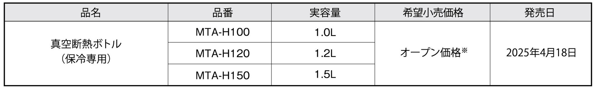 真空断熱ボトル(保冷専用)MTA-H100/H120/H150 2025年4月18日発売