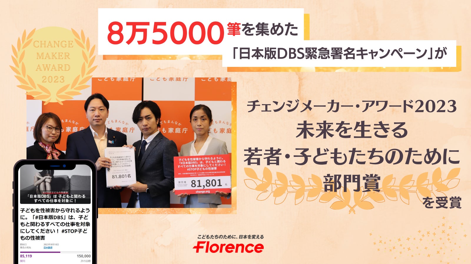 8万5000筆を集めた「日本版DBS緊急署名キャンペーン」 チェンジメーカー・アワード 2023「未来を生きる若者・子どもたちのために部門」賞を受賞