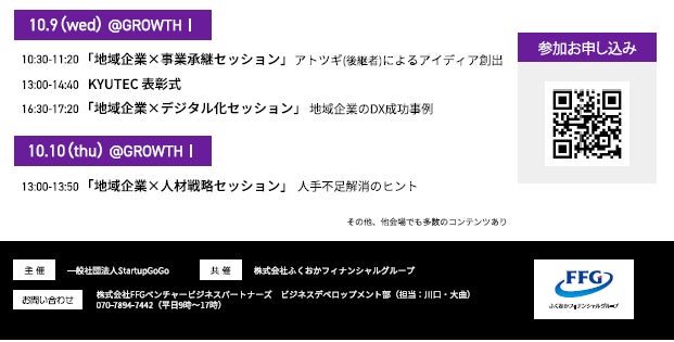 また、同会場内には「FFGステージ」も設けており、デジタル化や人手不足解消など地域企業の皆様のご関心の高いテーマセッションをおこないます。