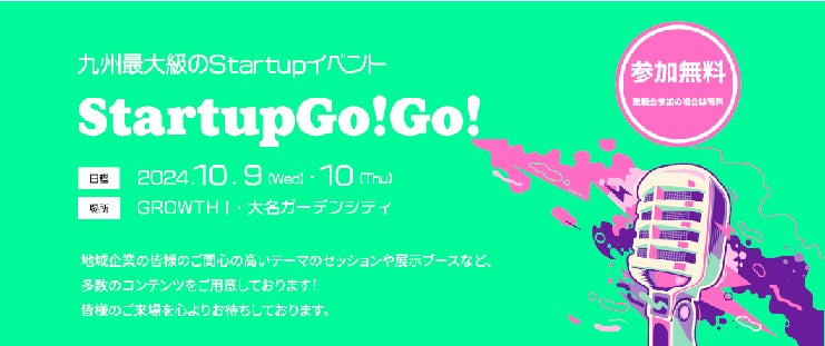 株式会社ふくおかフィナンシャルグループ(取締役社長 五島 久、以下「FFG」)は、一般社団法人StartupGoGo(代表 岸原 稔泰)との共催によるイベント『StartupGo!Go!』を開催いたします。