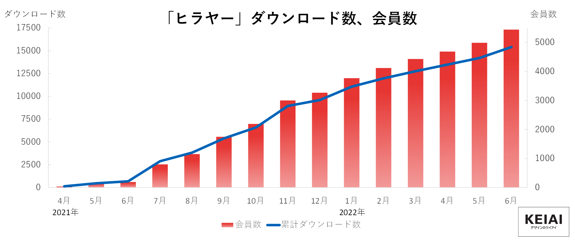 IKIは、販売開始当初より子育て後の減築などシニアの建て替えニーズを捉えております。さらに、近年の平屋ブームで平屋の利便性への認知が広がり、様々な世代からも多くの反響をいただいており(※2)、IKIのメディア掲載等の増加に伴い、いつでもどこでも手軽にマイホームを検討できる「ヒラヤー」の利用が加速度的に増えています。2021年12月から2022年6月にかけては、ダウンロード数及び会員登録数ともに約1.6倍に増加しました。