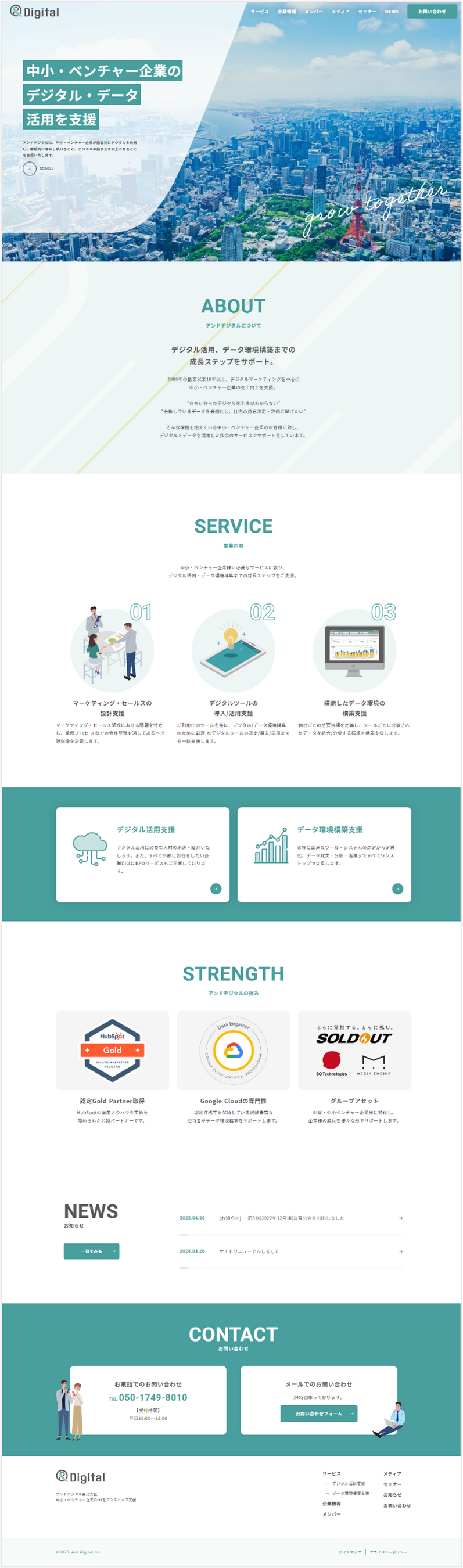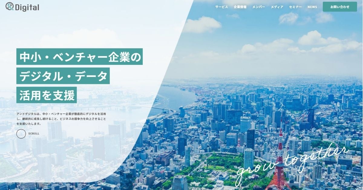 アンドデジタル株式会社は、「限りなき成長を、ともに。」をミッションに掲げ、マーケティングと営業領域に特化し、中小・ベンチャー企業向けのDX支援を行っております。HubSpotとGoogle Deta Cloudに強みを持っており、「デジタル活用支援」ではHubSpot・自社ツールの導入/運用/コンサルティングサービスを展開。