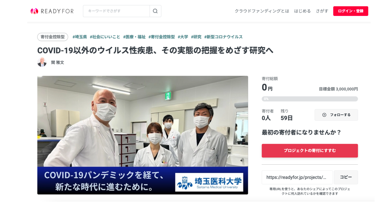 勤)は業務提携を締結し、本日、第一号としてクラウドファンディングプロジェクト「COVID-19以外のウイルス性疾患、その実態の把握をめざす研究へ」を公開いたしました。