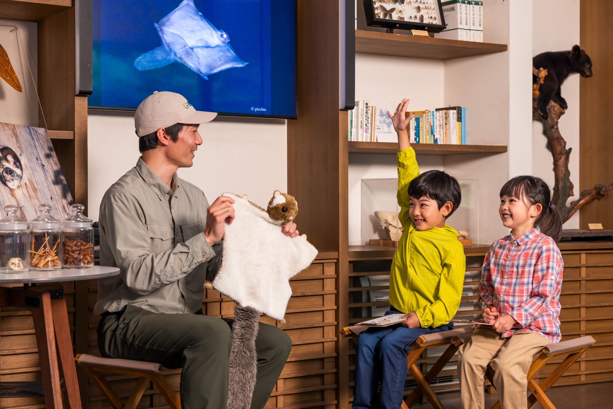 ツアーの前半はレクチャーの時間です。夜の森で樹上生活をするために進化してきた体の秘密や、驚きの生態に迫ります。生き物をこよなく愛するネイチャーガイドが、見逃さずに観察するためのコツなど、お子様にも楽しく分かりやすくレクチャーするので、大人からお子様までみんなでツアーを楽しめます。