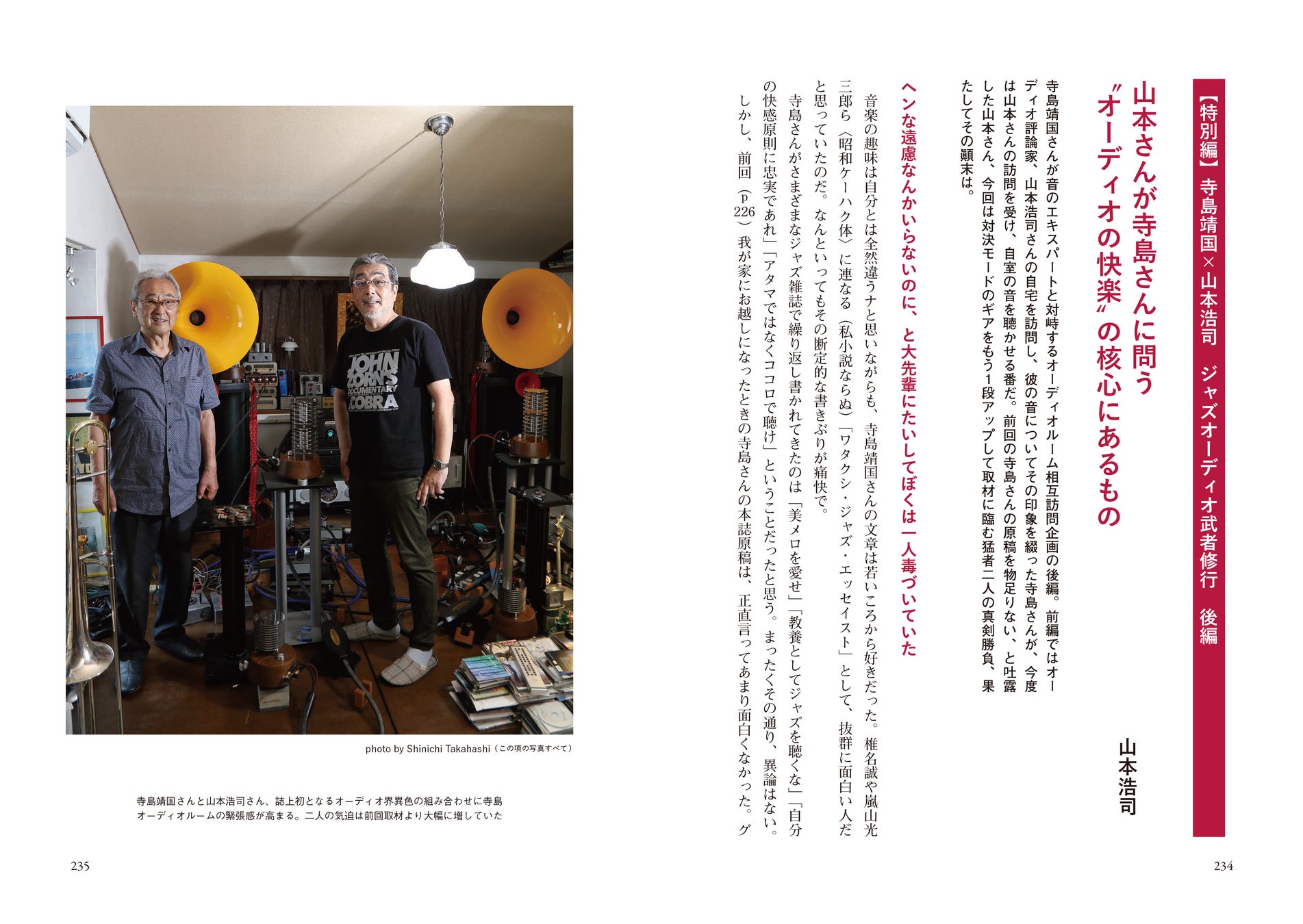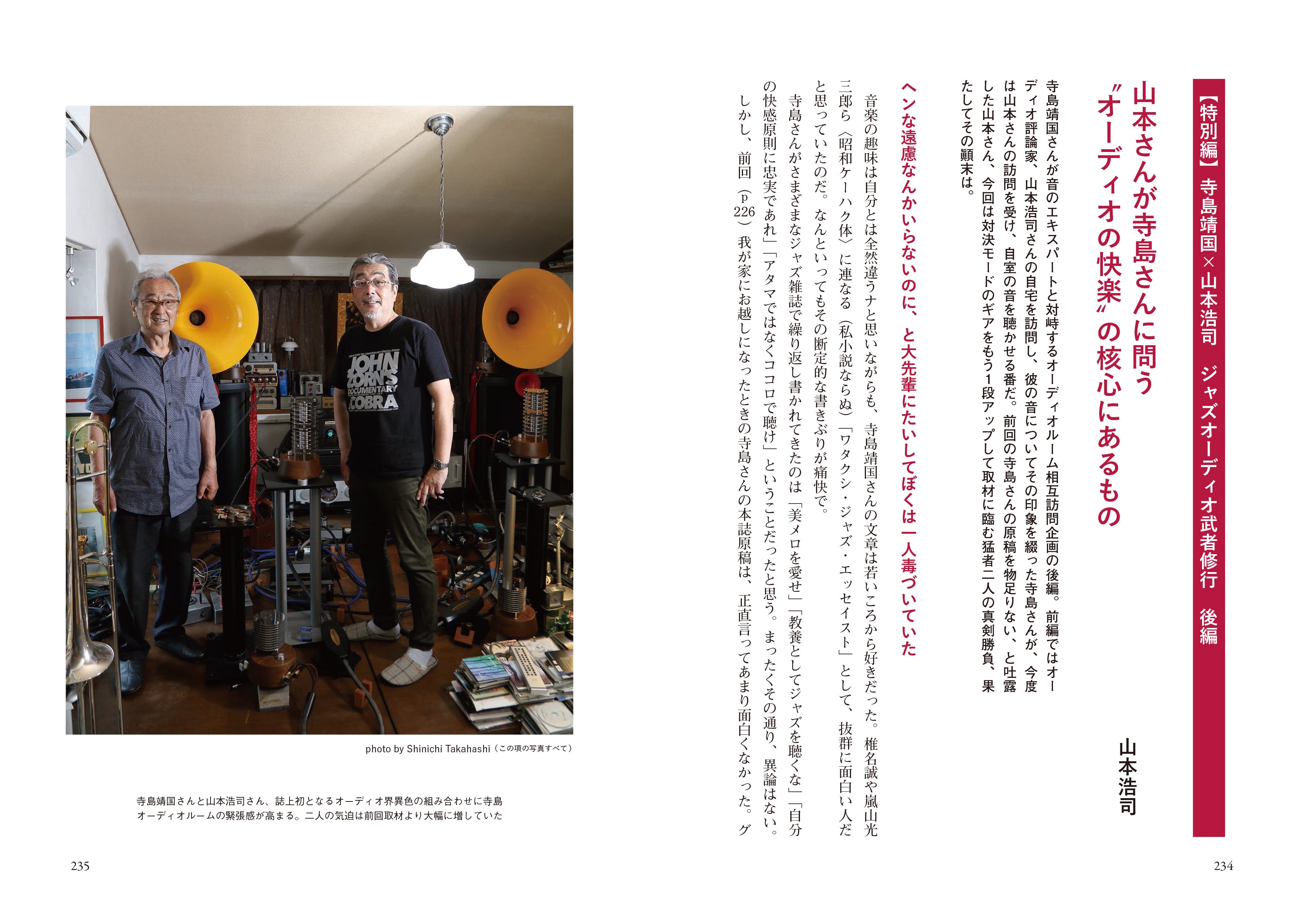 特別篇として、「HiVi」「ホームシアター」元編集長・山本浩司氏とお互いの部屋を訪問した「寺島靖国×山本浩司 ジャズオーディオ武者修行」も掲載。