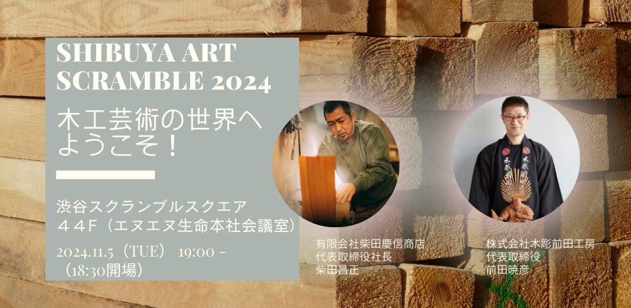 当日は、秋田県大館市が世界に誇る伝統工芸品「大館曲げわっぱ」の第一人者で、北国でじっくりと育った天然杉を使って先人から受け継がれてきた「わざと暮らしの美意識」を継承する有限会社柴田慶信商店の柴田昌正氏と、欧州をはじめ海外市場で挑戦を続けるだんじり彫刻師で、製品にあった国産木材を選りすぐって意欲的な作品を制作している株式会社木彫前田工房の前田暁彦氏が渋谷スクランブルスクエアにて登壇し、「日本から世界に飛翔する木工芸術の可能性」をテーマにトークセッションをお届けします。