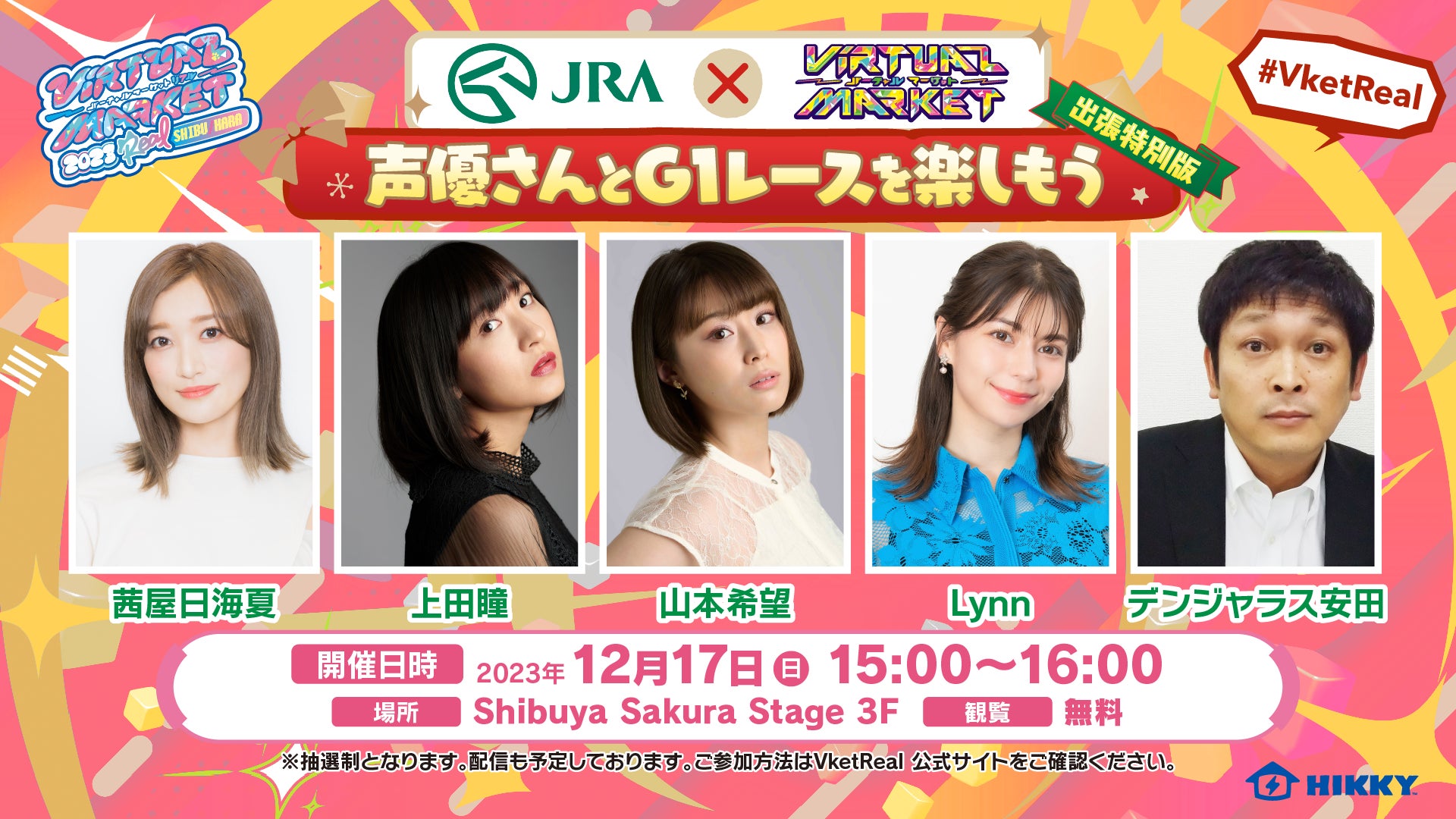 競馬好き、競馬初心者の芸人・声優が大集合!JRAオリジナルメタバースワールド「バーチャル中山競馬場」に出演者たちで来場し、リアルとバーチャルを融合させた競馬トークショーを開催します。さらに12月17日当日に開催されるG1レースを生中継しながら、みんなで結果を予想しよう!競馬に興味がある人もない人も必見、競馬の魅力をたっぷり堪能できるステージです!