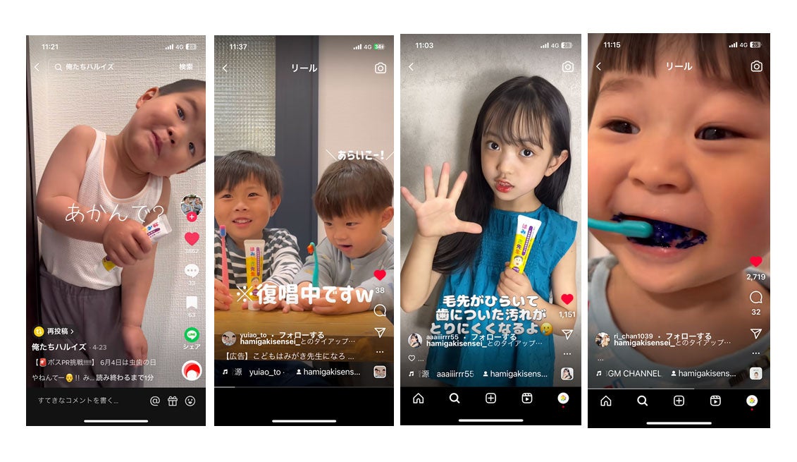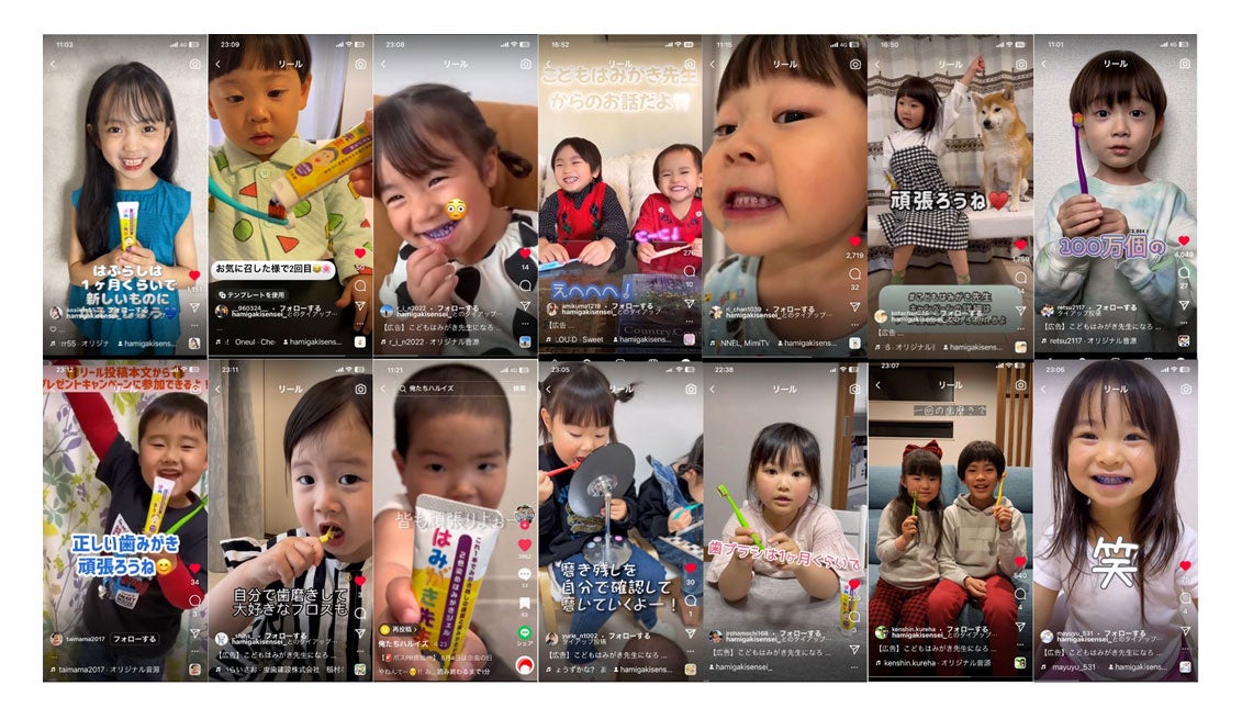 ◆ Instagram、TikTokを中心に「#こどもはみがき先生」のタグと共に動画が投稿されています。