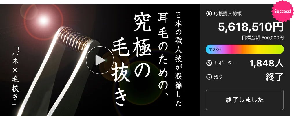 刃物の町、岐阜県関市のカミソリメーカーとして、その職人技を凝縮した究極の耳毛抜きを「Makuake」でデビューさせ、現在、「Makuake STORE for ECモール」で継続発売中。ストア内でも常に売り上げ上位にランクインしています。