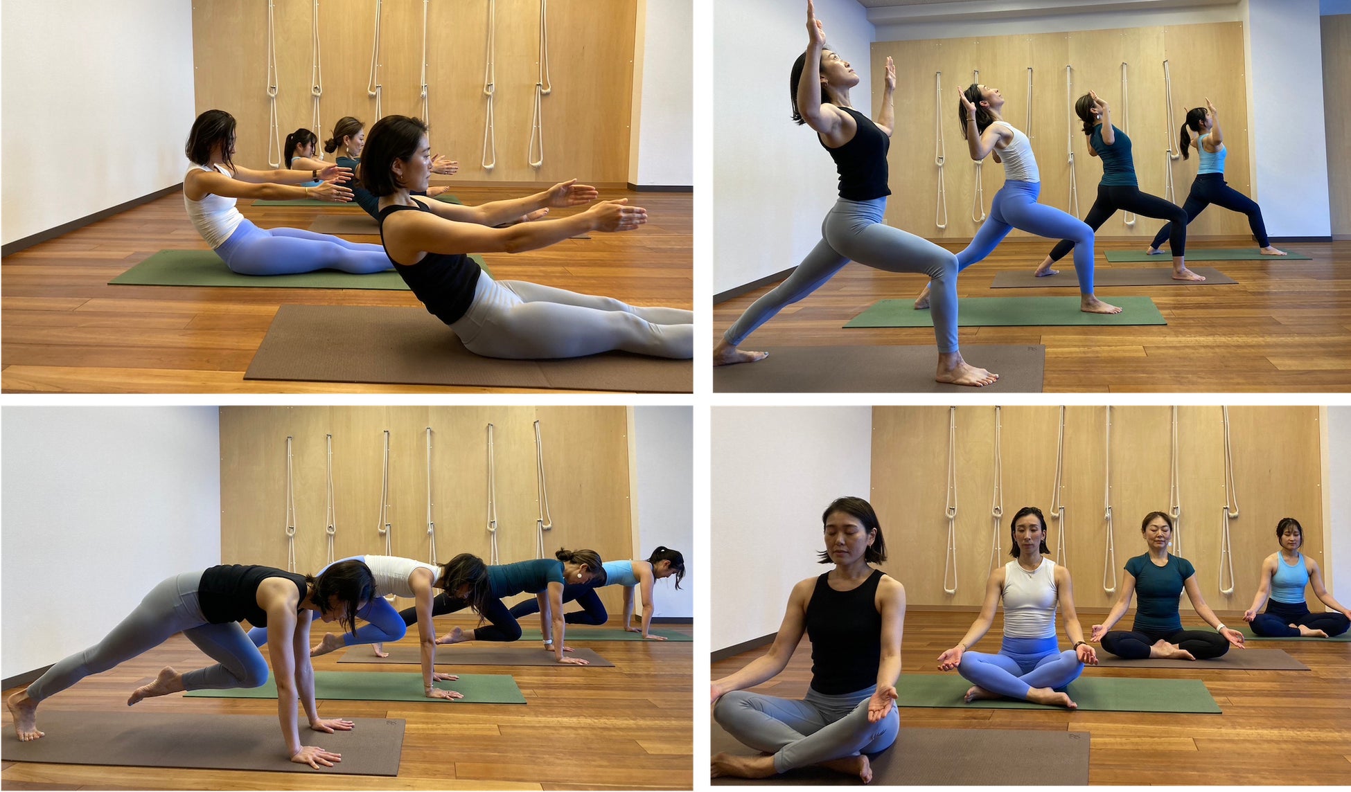 前半は背骨一つ一つから頭蓋骨まで、後半にかけてコアの安定に意識を向け、ゆっくりとしたペースでスタートし、徐々に呼吸の流れに合わせスピード・リズムを上げていきます。