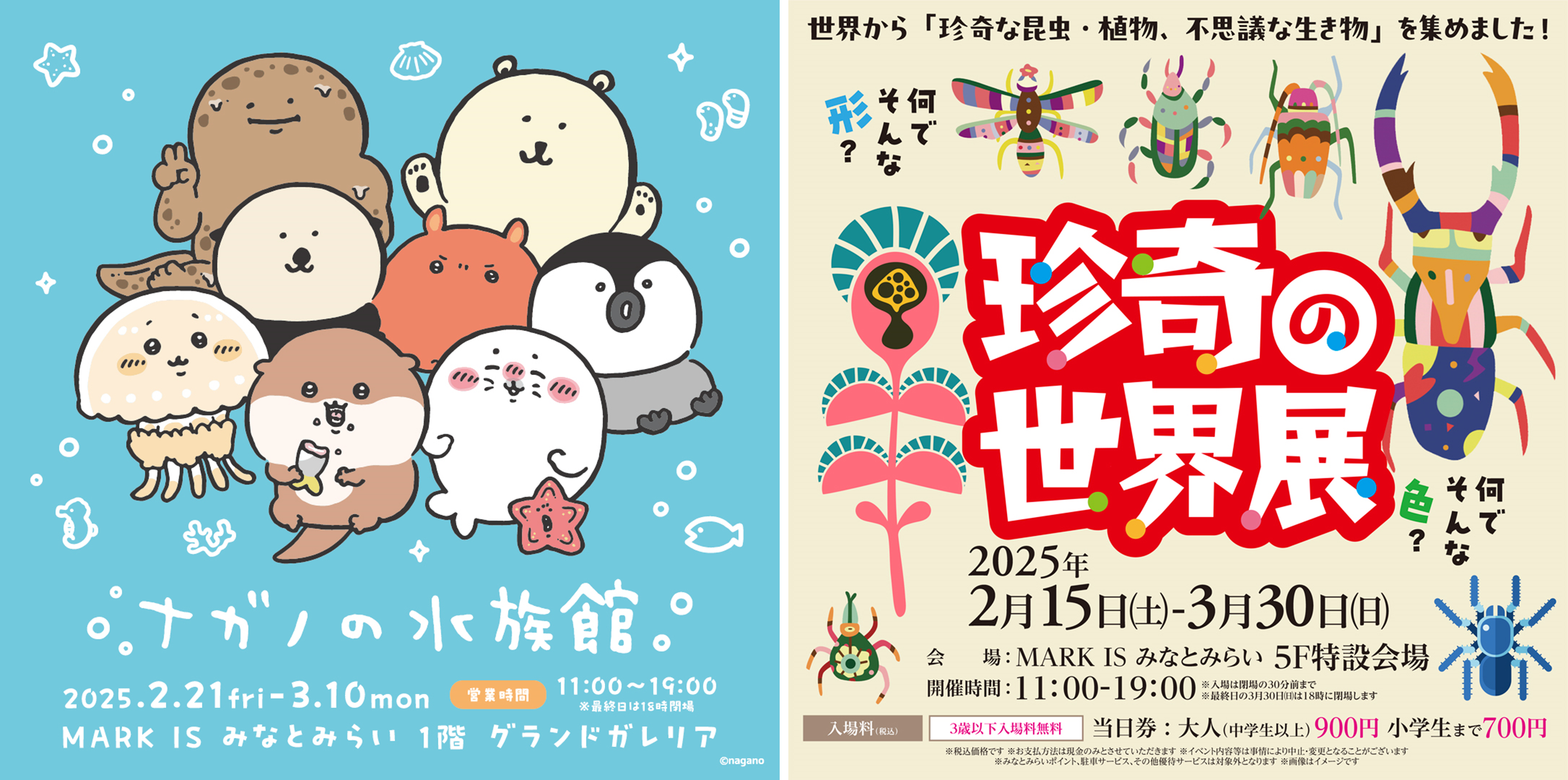 MARK IS みなとみらい(神奈川県横浜市/運営:三菱地所プロパティマネジメント株式会社)は、1階グランドガレリアにて、「ナガノの水族館 in MARK IS みなとみらい」を、2025年2月21日(金)~3月10日(月)の18日間限定で開催いたします。また、5階 特設会場では、特別展示「珍奇の世界展」を2月15日(土)~3月30日(日)で開催いたします。