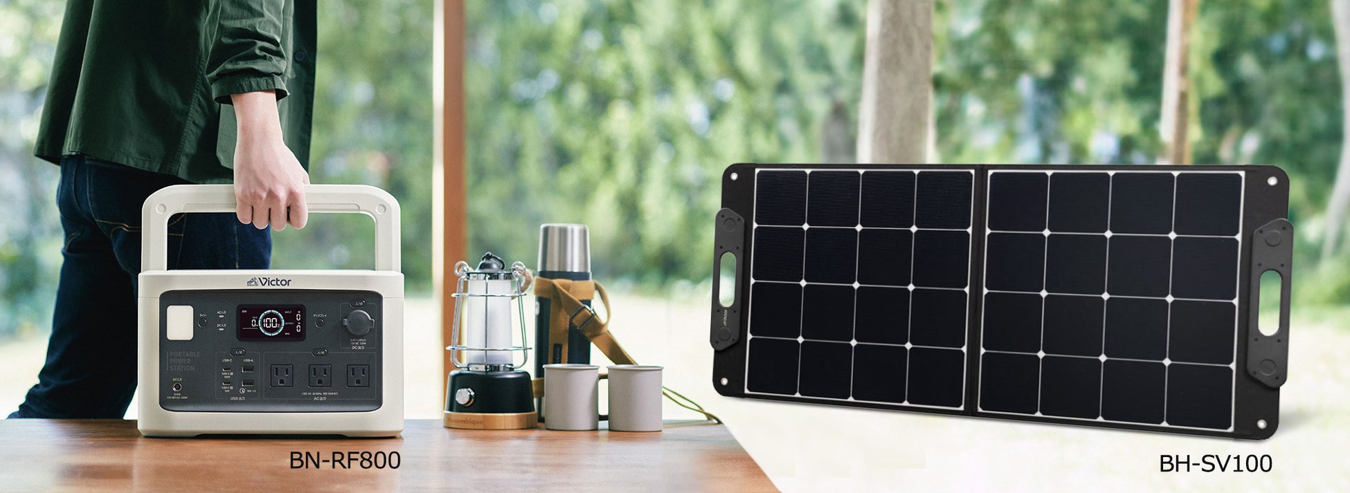 当社は2022年12月、Victorブランド初となるポータブル電源として大容量・高出力の「BN-RF1500」(ハイパフォーマンスモデル)と「BN-RF1100」(パワフルモデル)、および軽量・高出力のポータブルソーラーパネル「BH-SV180」を発売しました。同ポータブル電源2モデルは、「リン酸鉄系リチウムイオン充電池」の採用により、高い信頼性と長寿命を両立していることに加え、常時コンセントに挿したまま使用できる使い勝手の良さで、好評を得ています。