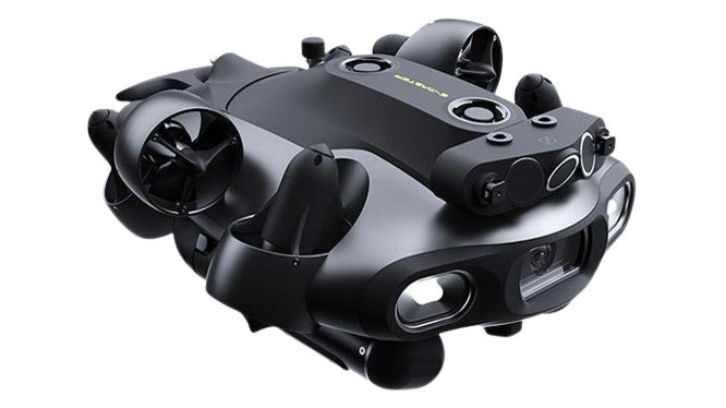 外洋調査、作業適した水中ドローン、最大潜行深度350m、パワフルなQモーター搭載で荒れた環境でも安定性を保つ産業用水中ドローン。様々な拡張パーツにも対応し、あらゆる環境での調査・作業が可能
