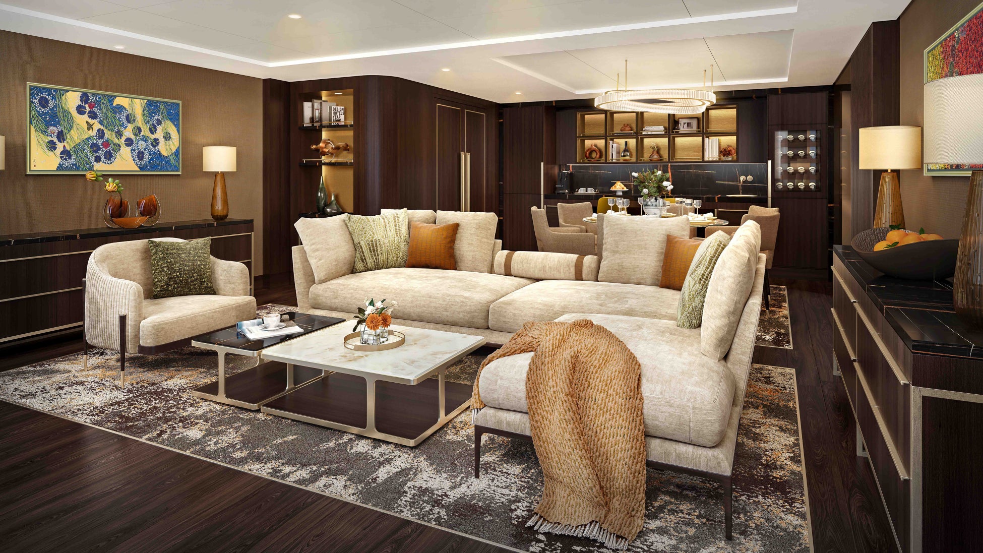また、クルーズを通して日本文化の素晴らしさを伝えながら、日本の芸術文化を支える作家の美術品・工芸作品の数々に彩られた船内で日本文化をつないでいきます。
