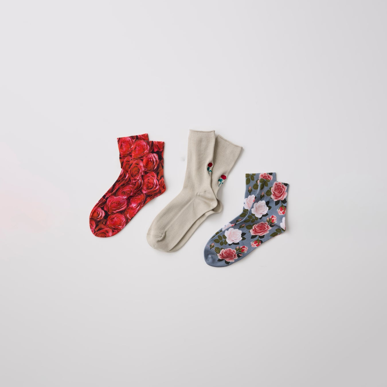 薔薇モチーフ靴下・総柄(赤)着用来店で約1年間 1割引き(※)の特典付き
