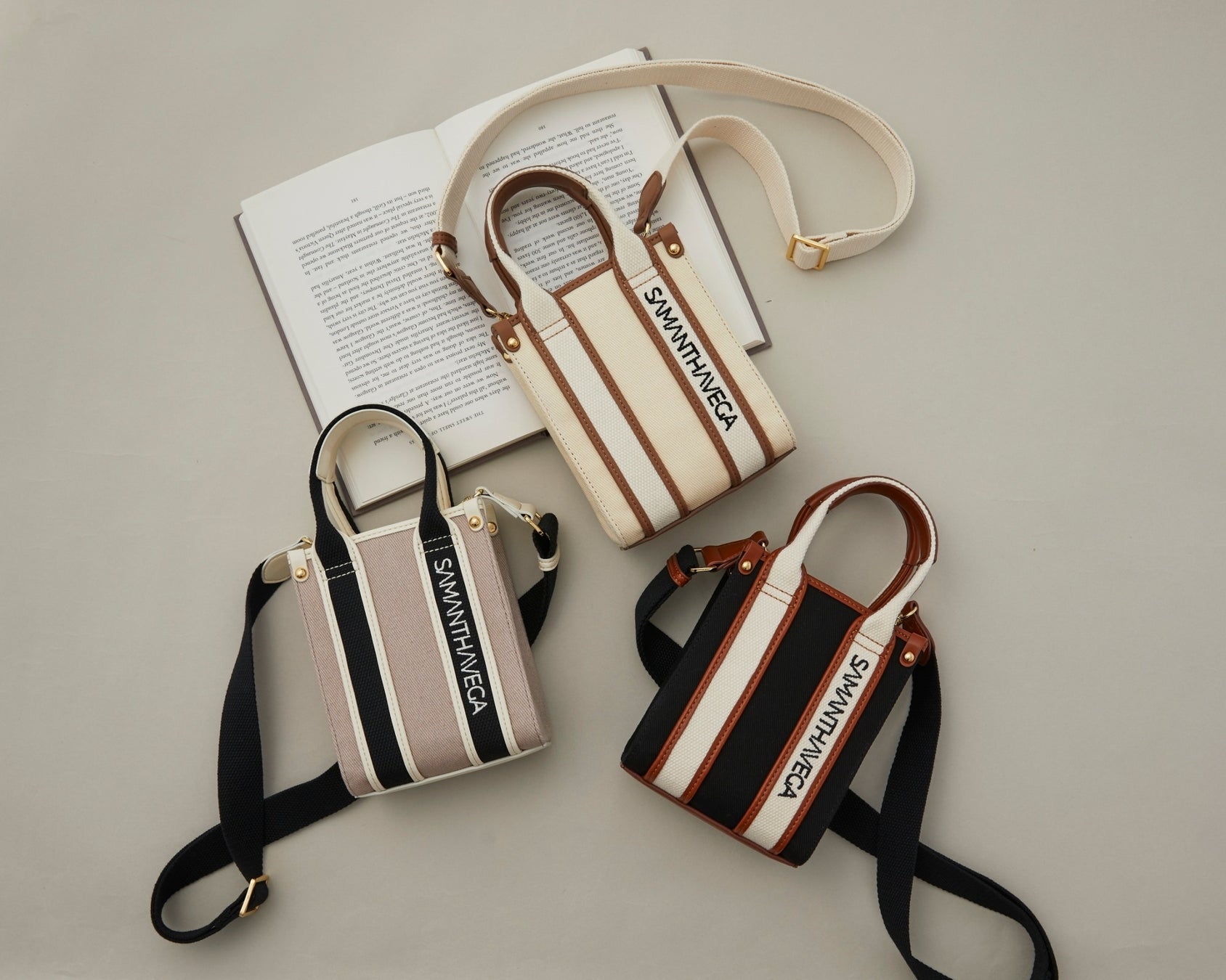 サマンサベガで大人気のロゴテープキャンバスシリーズから“ZOZOTOWN限定“ でコンパクトなサイズ感にアップデートしたショルダーバッグを販売。SAMANTHAVEGAのロゴテープにバイカラーの配色が映える、王道カジュアルコーデのワンポイントにも合わせていただきたいシリーズ。