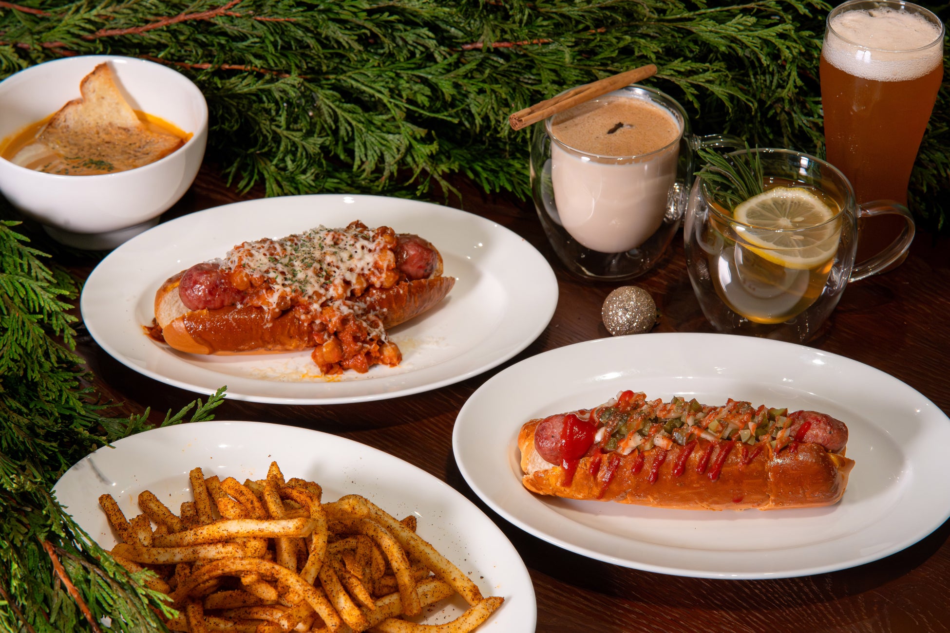 日独の食文化を融合させたCAFÉ & BAR Bが初出店。レンズ豆とトマトソースのホットドッグは、ドイツの豆料理とソーセージを組み合わせたクリスマス向けの一品です。そのほか、オマールエビのビスクなど、ここでしか味わえない特別なメニューをお楽しみください。