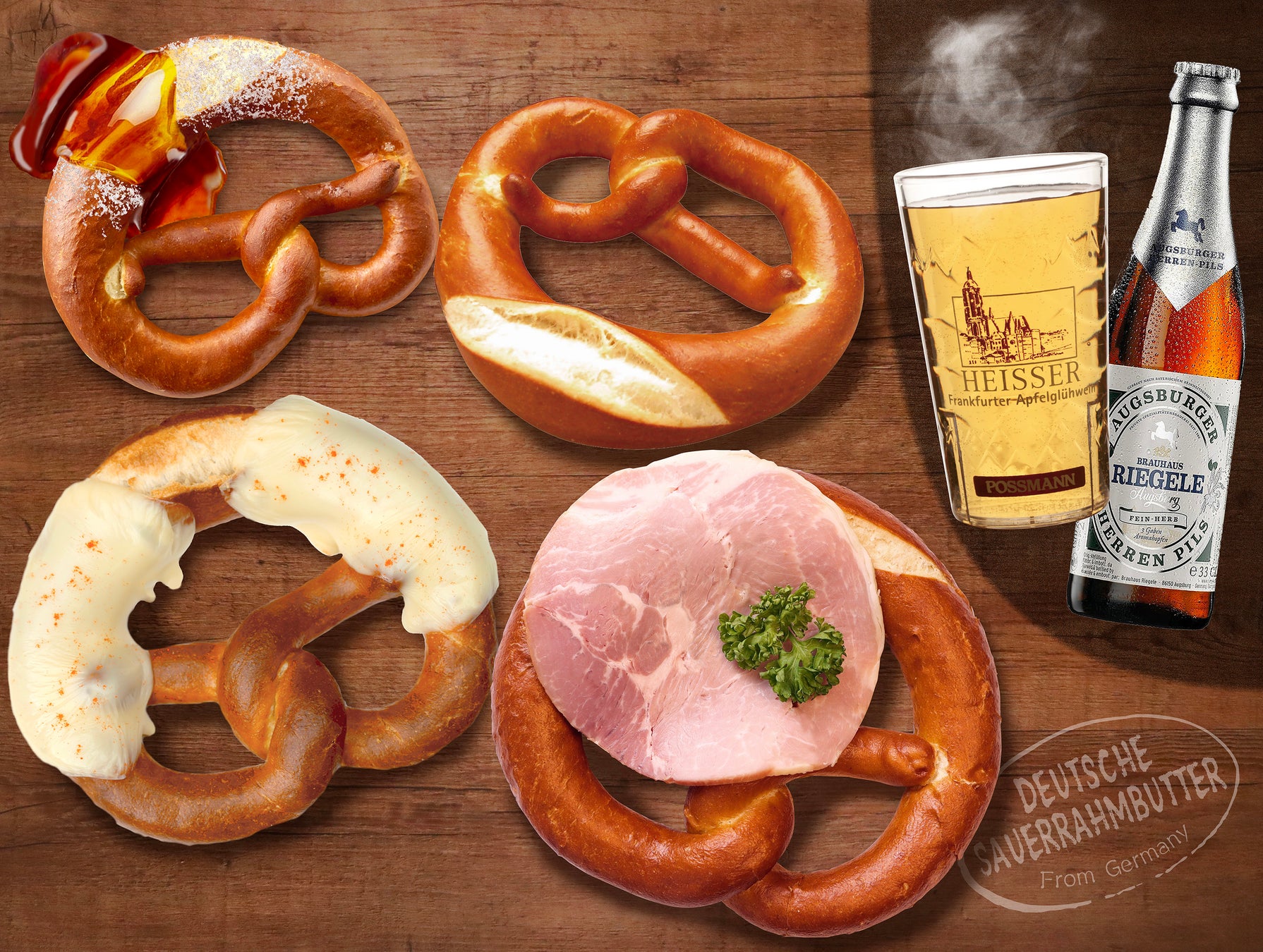 ジャーマンクリスマススタンドの姉妹店として、ドイツ産・発酵バター入りプレッツェルの専門店が初出店。チーズやハムをのせたお食事タイプと、メープルシナモンシュガーをかけたデザートタイプ、どちらも焼き立てをご提供します。秘伝のレシピで作るアップルグリューワインやビールとお楽しみください。