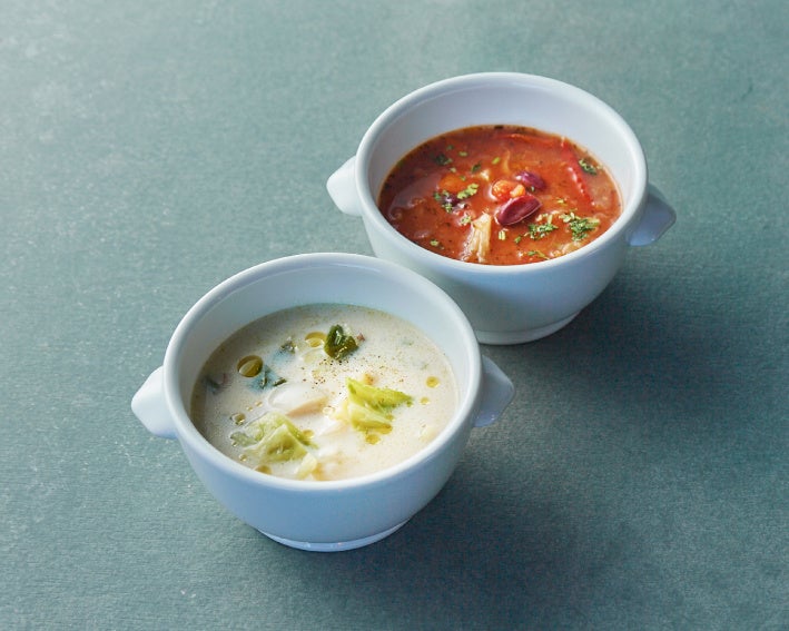 商品|VEGANチリコンカン/豆乳チャウダー 各800円
