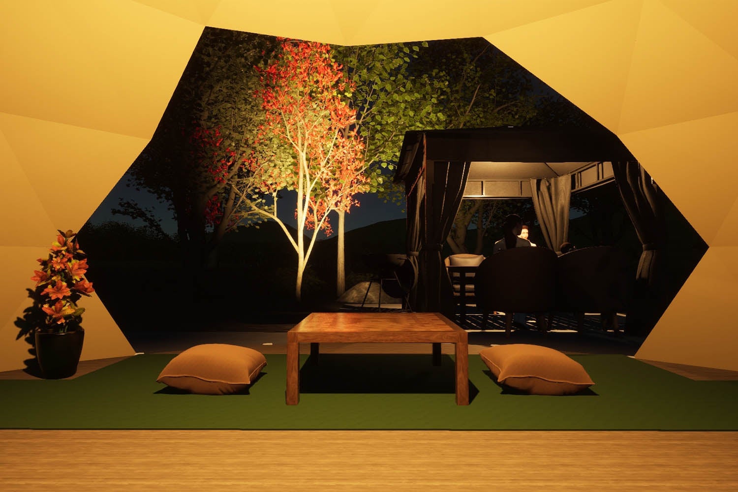 ②日本の“和”を感じる、森に包まれたドームテント