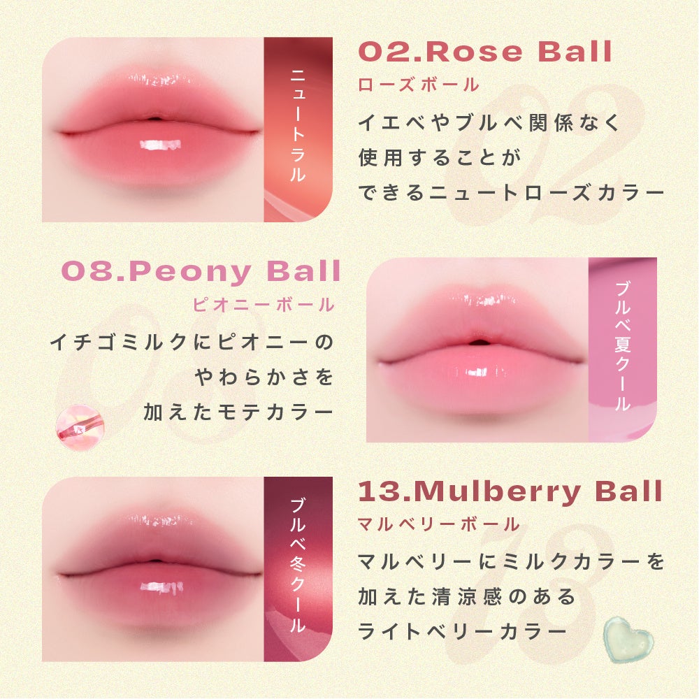 ガラス玉のグロッシーな光沢×インクのようにじゅわっと染めるような色持ちをかなえるティント処方。小さいながらも実力派です!