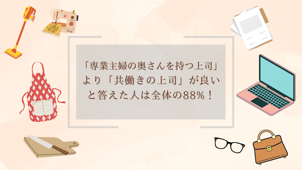 結果は「共働きの上司」の方が良いと考えた人は全体の88%にのぼり、「奥さんが専業主婦の上司」を希望する人数に大きく差をつけました。