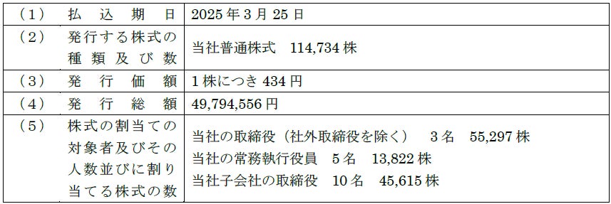 譲渡制限付株式報酬としての新株式の発行に関するお知らせ