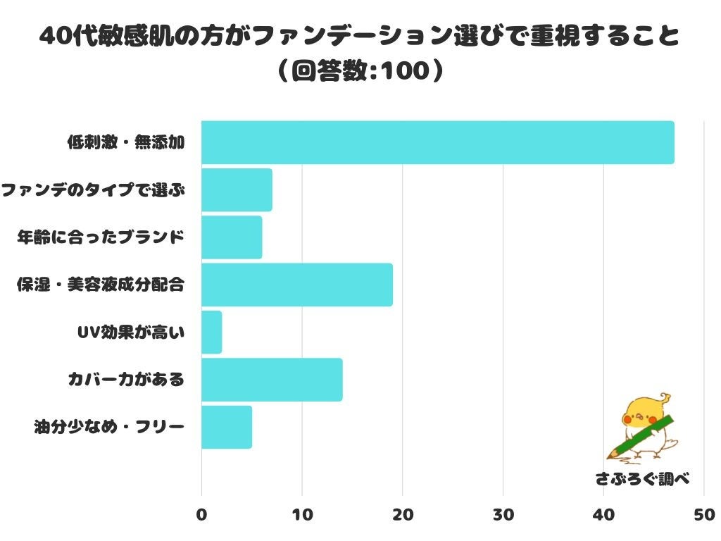 【調査レポート】40代敏感肌の方がファンデーション選びで重視することは?1位は「低刺激・無添加」でした!