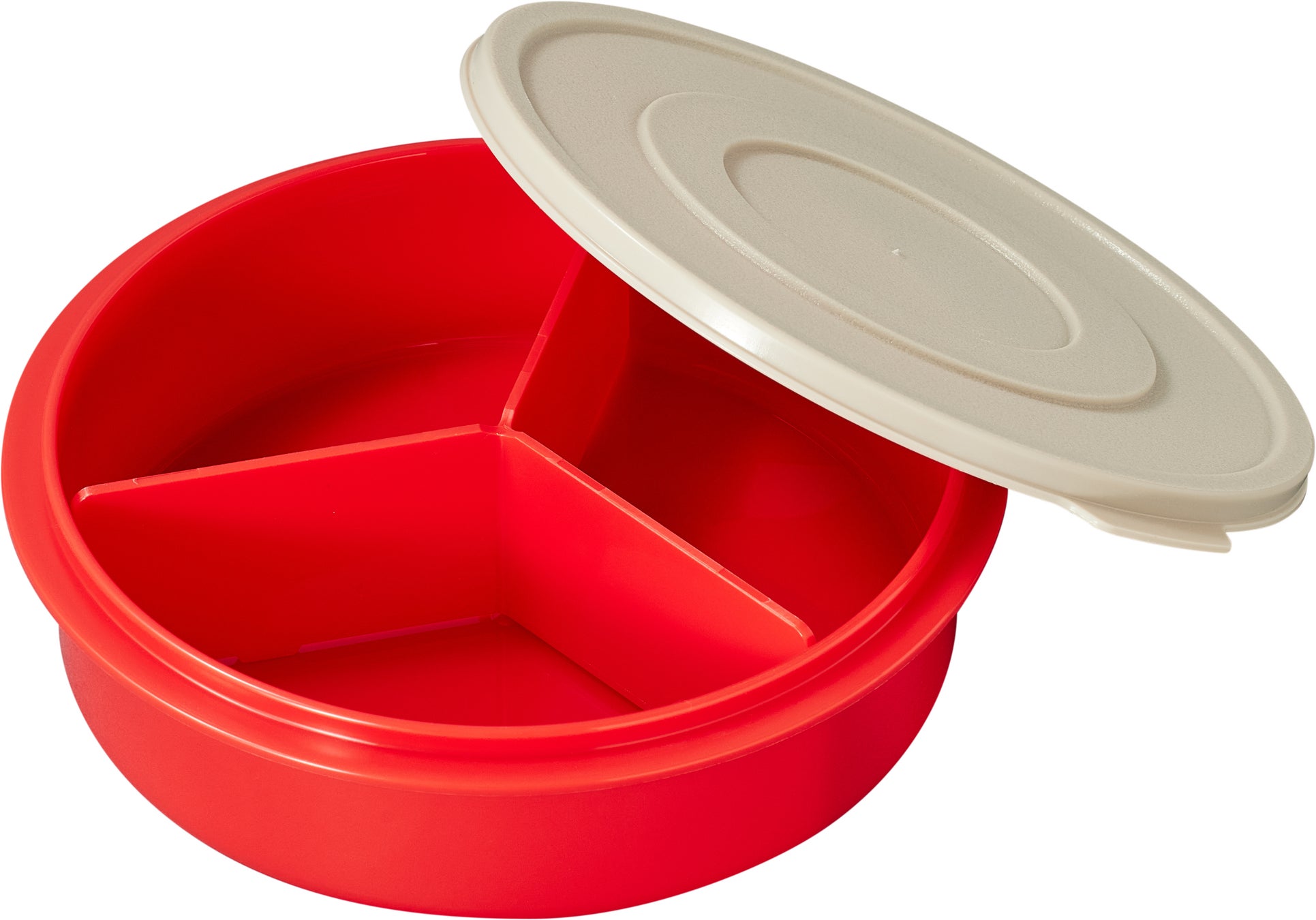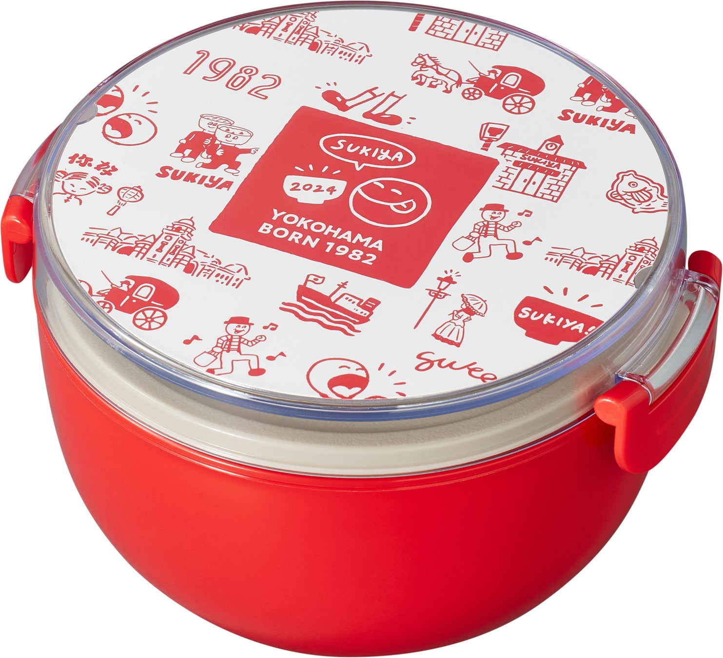 すき家らしい、どんぶり型のお弁当箱です。おかずとご飯を分けることができる容器と仕切りセットが付いてくるので、食べる直前に具材をご飯にのせてお弁当をお召し上がりいただけます。