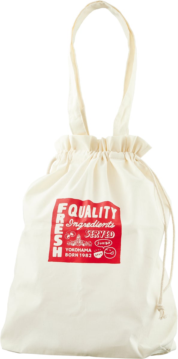 買い物や着替えの持ち運びに便利なサイズのトートバッグです。巾着タイプになっており、しっかり口を閉めて使用することも可能です。
