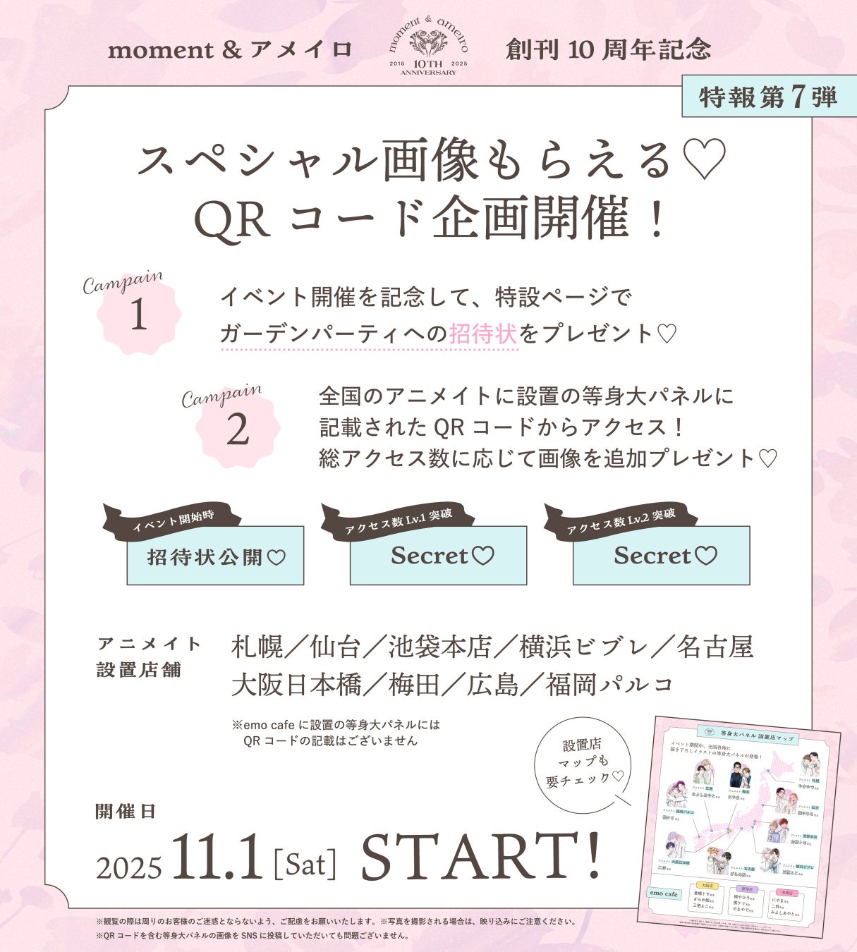全国のアニメイトに各作家の等身パネルを設置&パネルのQRコードを読み込むと、限定画像をプレゼント!