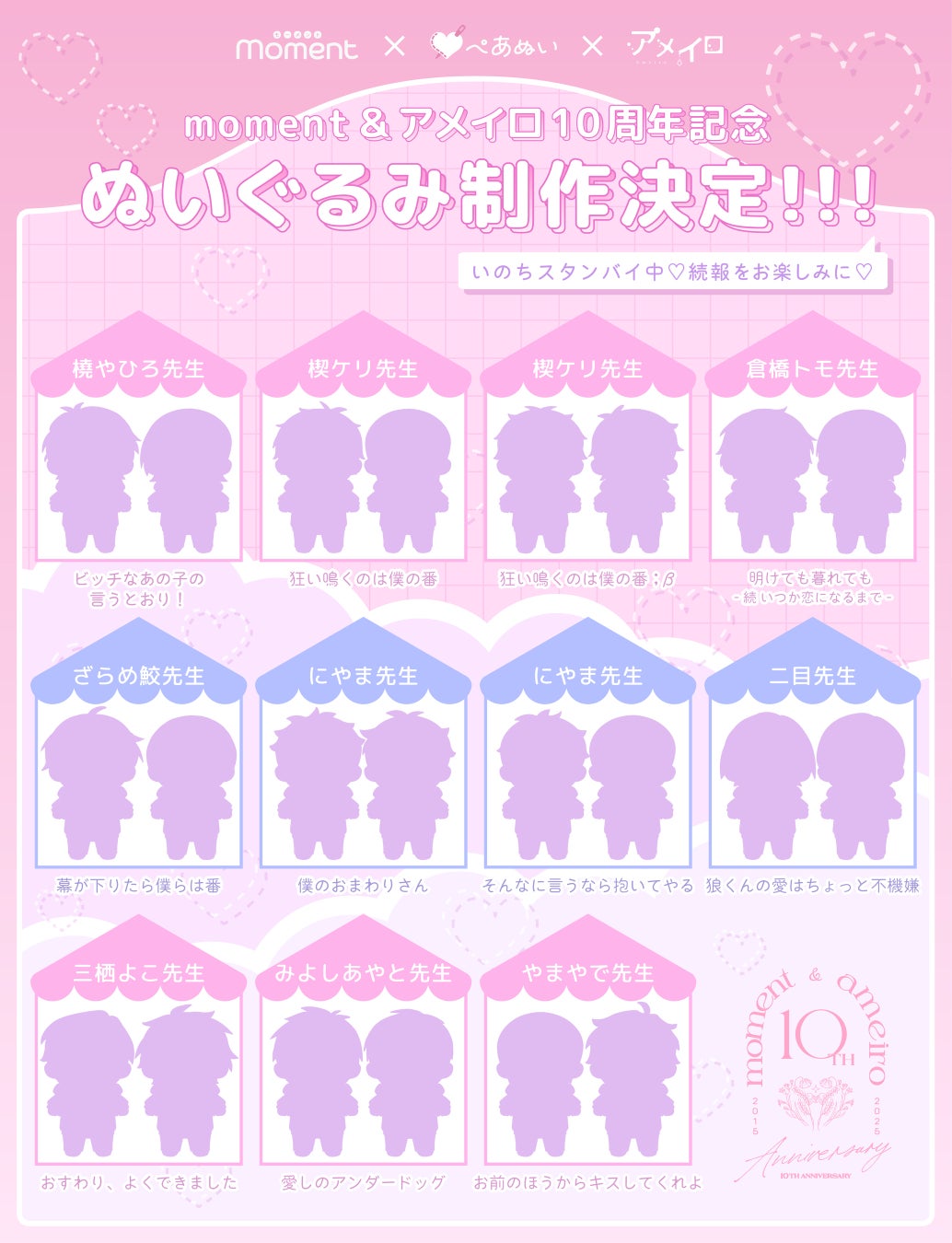 レーベル10周年を記念し、アニメイト池袋本店での展示やemo cafeでのコラボカフェ、ORIGOOぬいぐるみ販売など、様々なイベントを実施いたします。