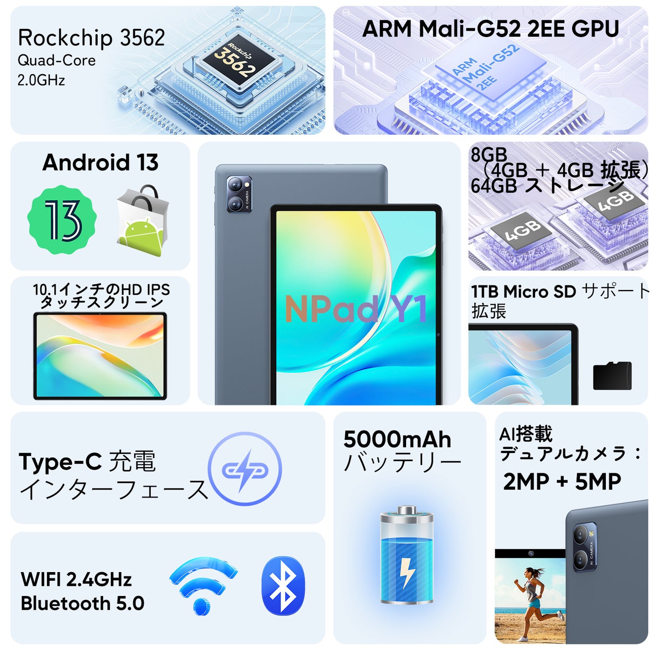 超高解像度ディスプレイ+大容量バッテリー: NPad Airタブレットは10.1インチのIPS液晶ディスプレイを搭載。高解像度で視野を広げ、16:10の画面比率で快適な動画視聴体験を提供。6600mAh大容量バッテリーにより、長時間利用が可能。軽量化ボディで持ち運びも便利。