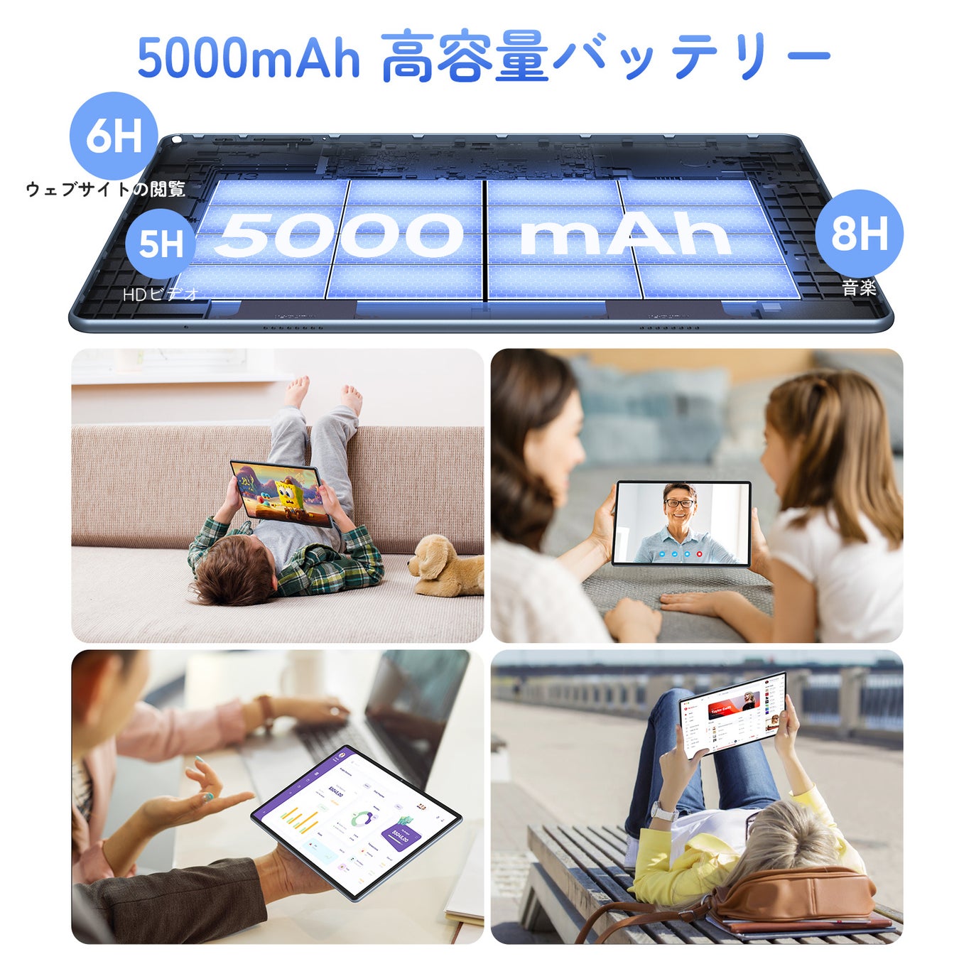 長時間利用可能な大容量バッテリー: 5000mAhのバッテリー搭載で、長時間の使用にも対応。360時間の待機時間を実現し、バッテリーの心配なくタブレットを自由に利用できます。