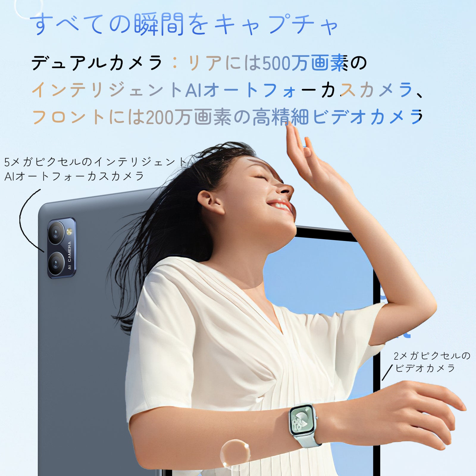 高品質なカメラと高速Bluetooth5.0: 5MPのリアカメラと2MPのフロントカメラで高品質な写真や自撮りが可能。Bluetooth5.0搭載で、高速かつ安定したワイヤレス接続を提供。データ転送速度や通信距離、バッテリー寿命の向上に貢献します。